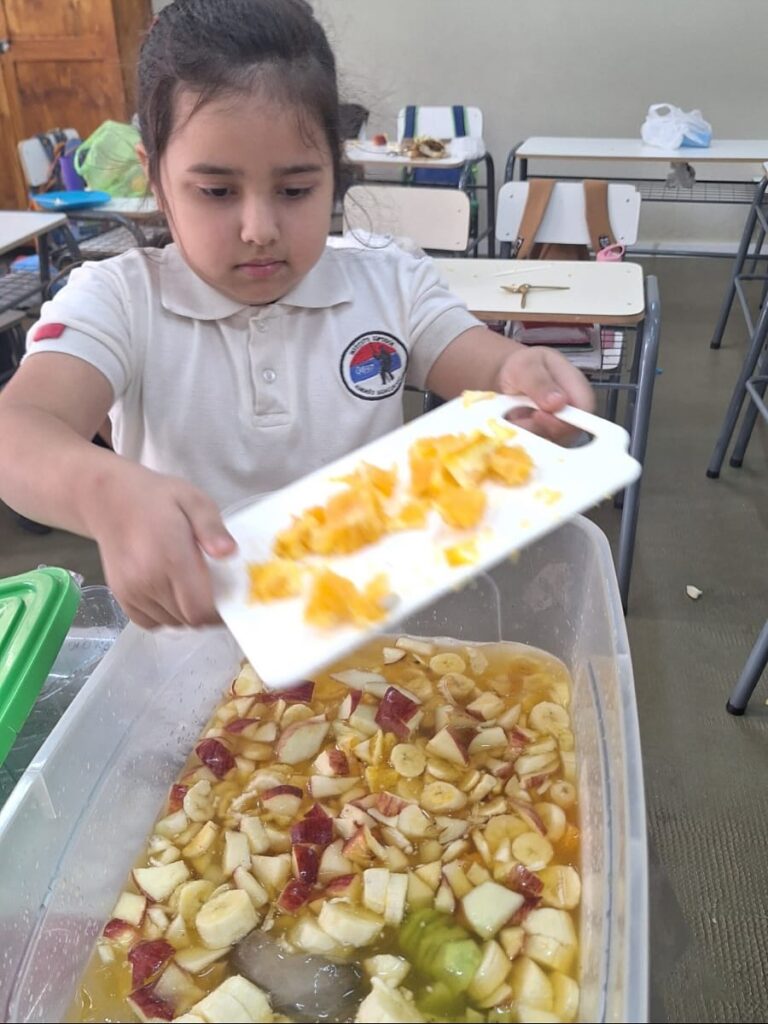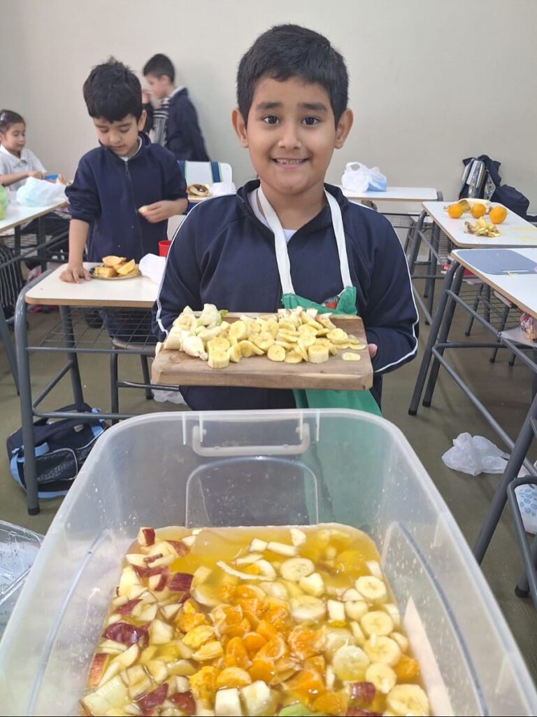 Los estudiantes de 2° grado trabajaron el texto instructivo de una manera muy divertida y deliciosa: elaborando una ensalada de frutas en el aula.