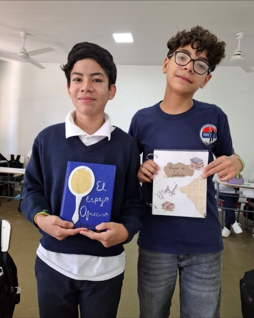 Desde el área de Lengua a partir de la lectura de “El Espejo Africano” de Liliana Bodoc, los estudiantes de 1° año A y B se lanzaron a una emocionante aventura literaria, elaborando sus diarios de lectura. Con gran imaginación y sensibilidad, dieron vida a las escenas y a las voces de los personajes, sumergiéndose en el fascinante mundo narrado.